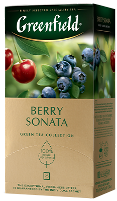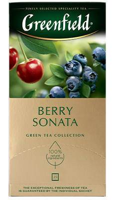 Сочная сладость спелой клубники, тонкие ноты ароматной вишни и характерная кислинка черники звучат в унисон с легкой терпкостью превосходного зеленого чая, создавая великолепно сбалансированный букет композиции Гринфилд Берри Соната.